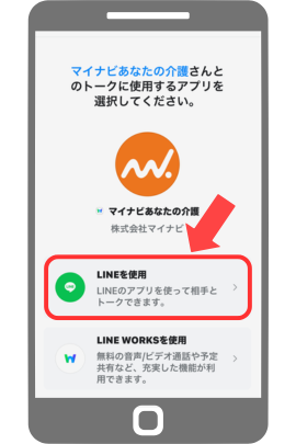 「マイナビあなたのさんとのトークに使用するアプリを選択してください」