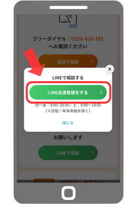 LINE(ライン)相談の時間帯は月〜金:9:00〜20:00/土:9:00〜18:00(※日曜・年末年始を除く)